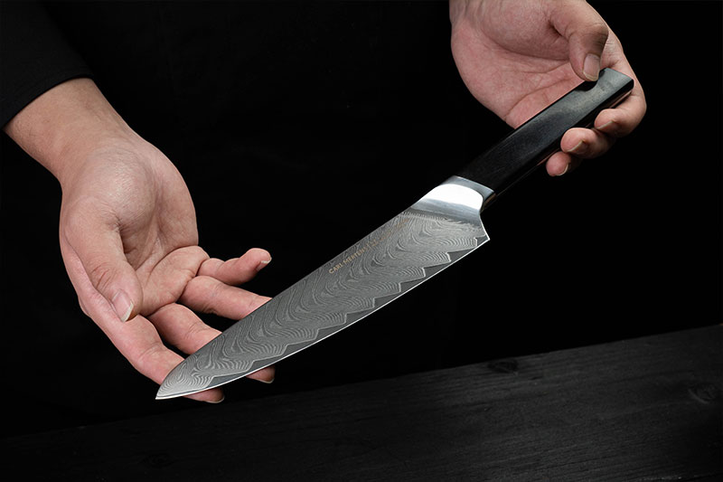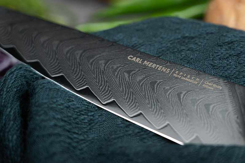CARL MERTENS史诗系列采用日立VG10钢芯的67层大马士革钢为基材,在保持锋利度和坚硬度的同时,拥有较好的韧性,是CARL MERTENS刀具至高技艺的代表之作,亦是殿堂级的形象产品。